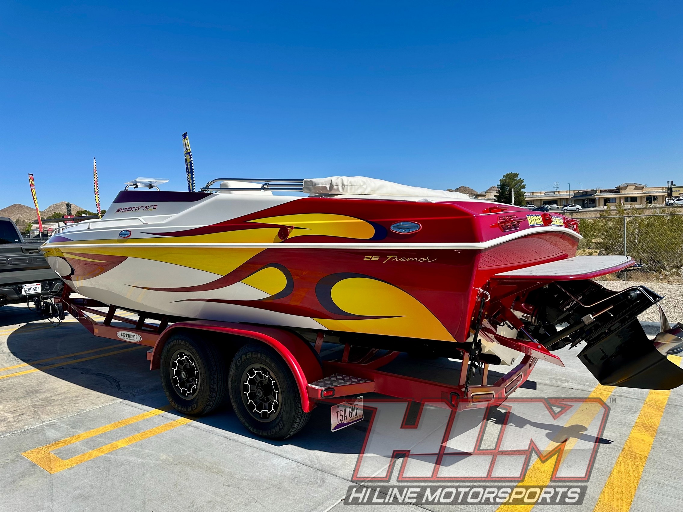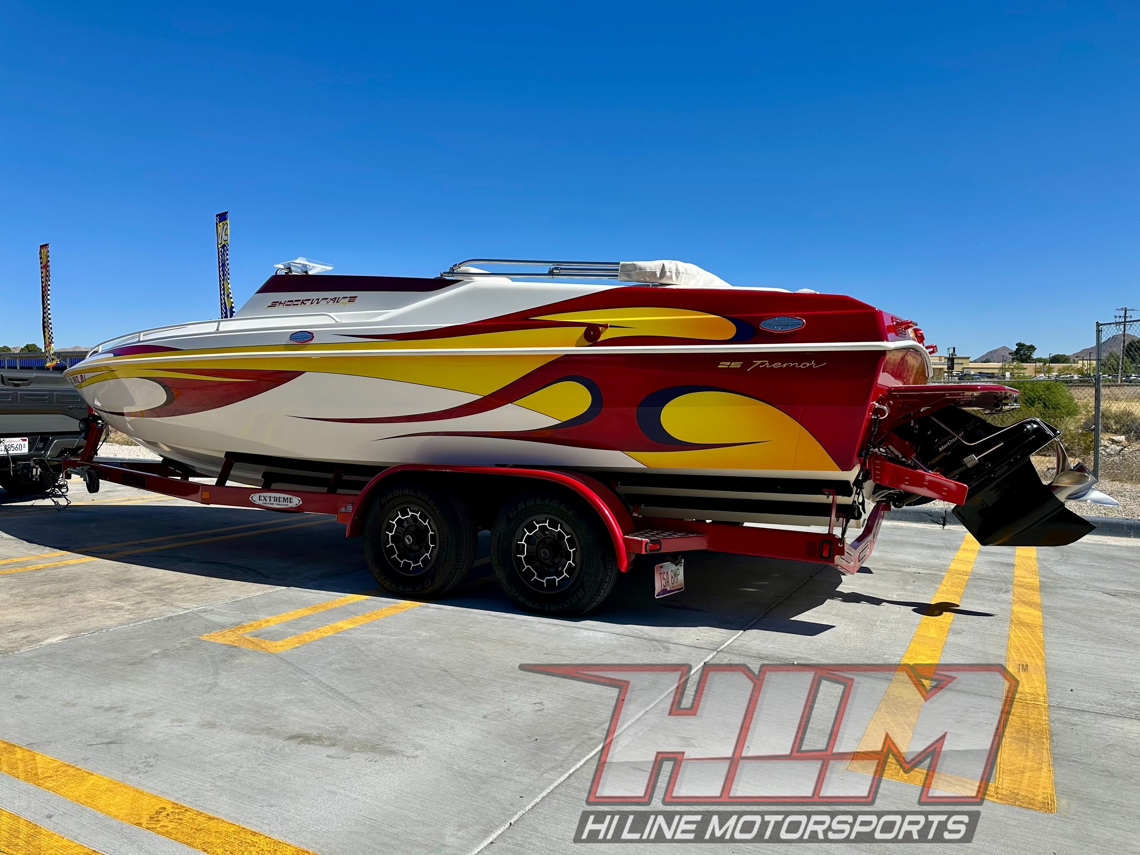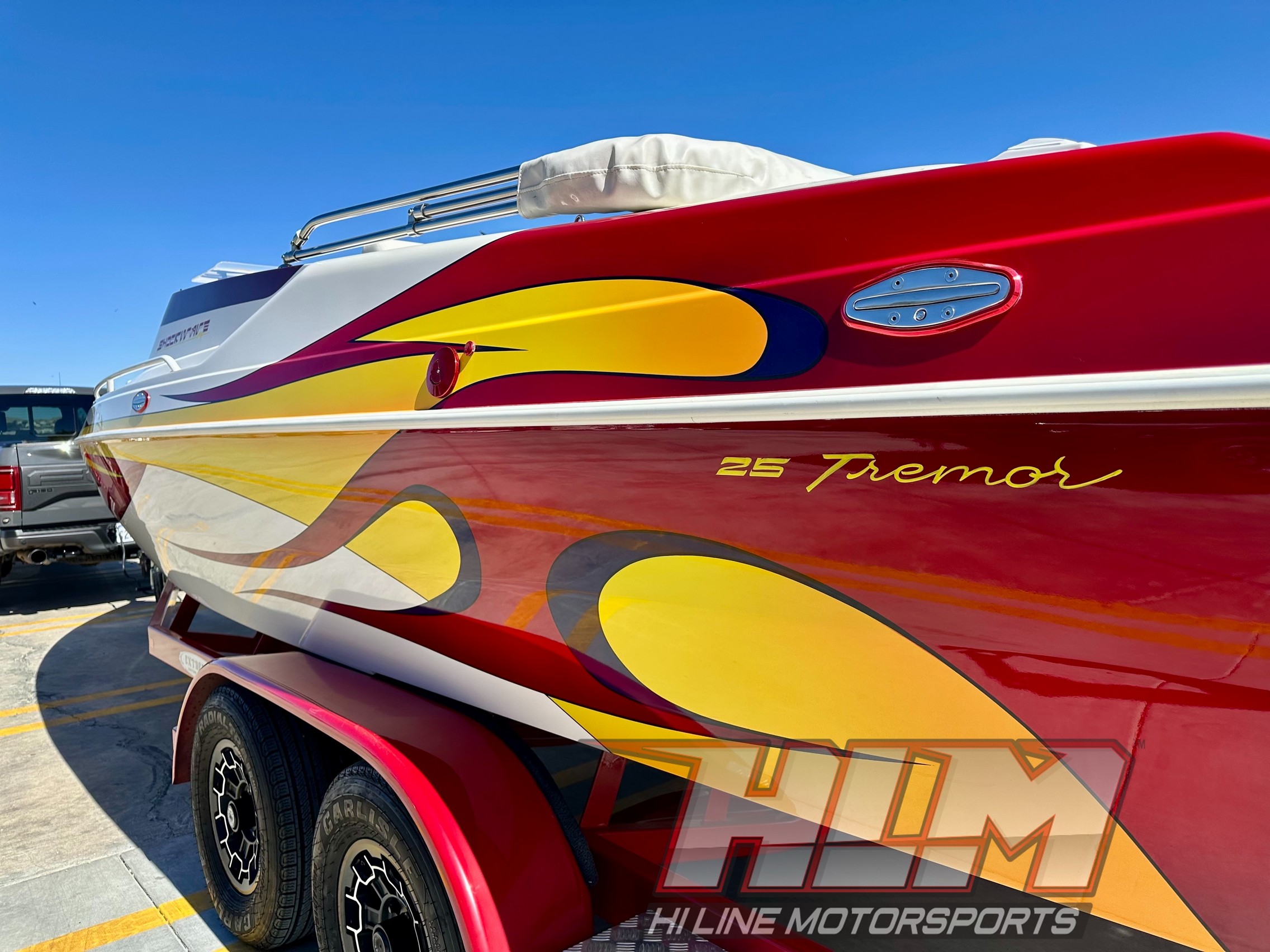 2005 Shockwave 25 Tremor MCOB *mercury 496 HO In Stock Boats Price- $57,900 Hours- 429 Hours Original – 163 Idle hours! Very little hours above 3500 RPM Mercury 496 HO, Bravo 1X, Dana Billet Trim Tabs, Dana Hinges for hatch, Wind screens, Drop Out Bolsters, Upgraded stereo! Stored indoors, Super Nice!! Caliber1 Custom Boats Nordic Essex Commander Nordic Eliminator DCB Magic Sleekcraft Shockwave Ultra Cobra HTM Added April 16, 2026 ← 2023 Veranda VP22RC Tritoon *Yamaha SHO 250HP* 46 hours! 2004 Caliber 1 230 Velocity Bow Rider *Mercury 5.7L 350 Magnum (300HP) 112 hours!! →