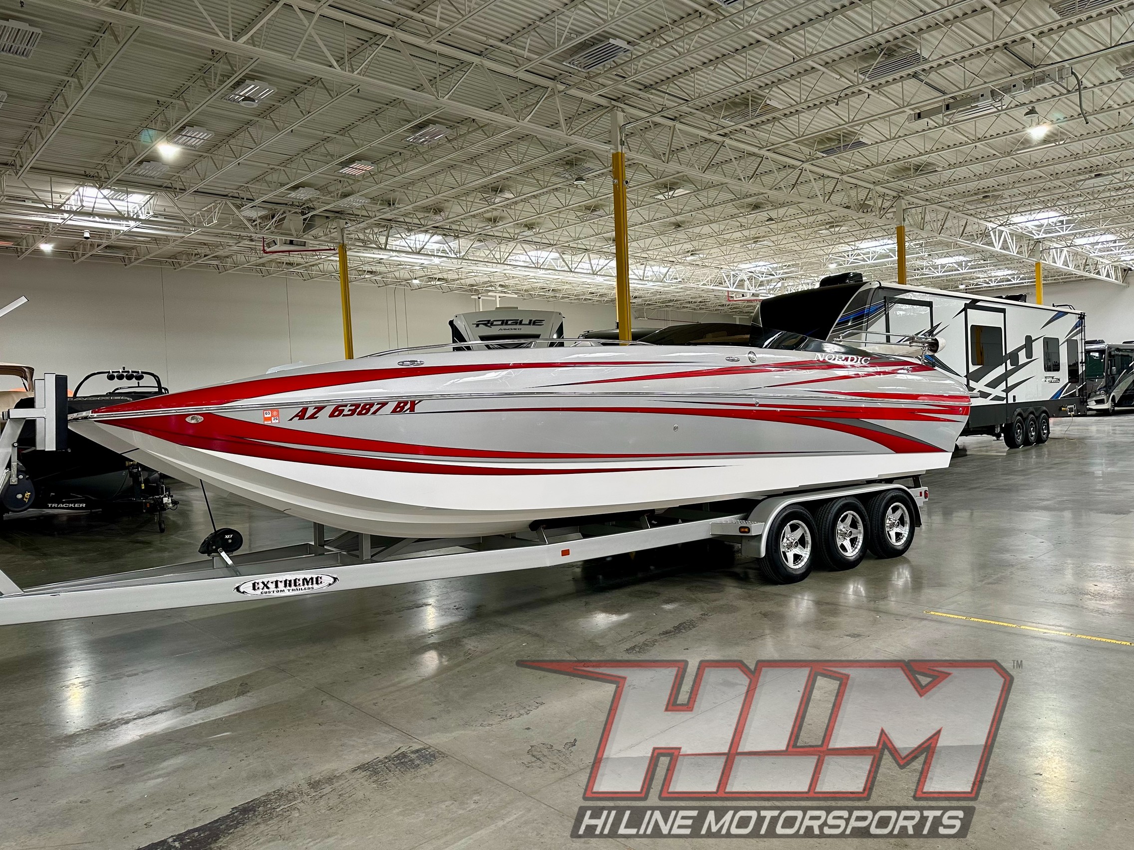 2017 Nordic 26 Deck *Loaded up with factory options and original owner! Approx. 150 hrs, Mercury 8.2L 430HP, Bravo1X, Trim Tabs, Gel Coat upgrade when built with killer colors, interior upgrade factory option, custom Extreme Trailer, SS Bimini, full cover, Mint Condition, Stereo upgrade, Vessel View, Turn Key Ready, Just Serviced and ready to go!
